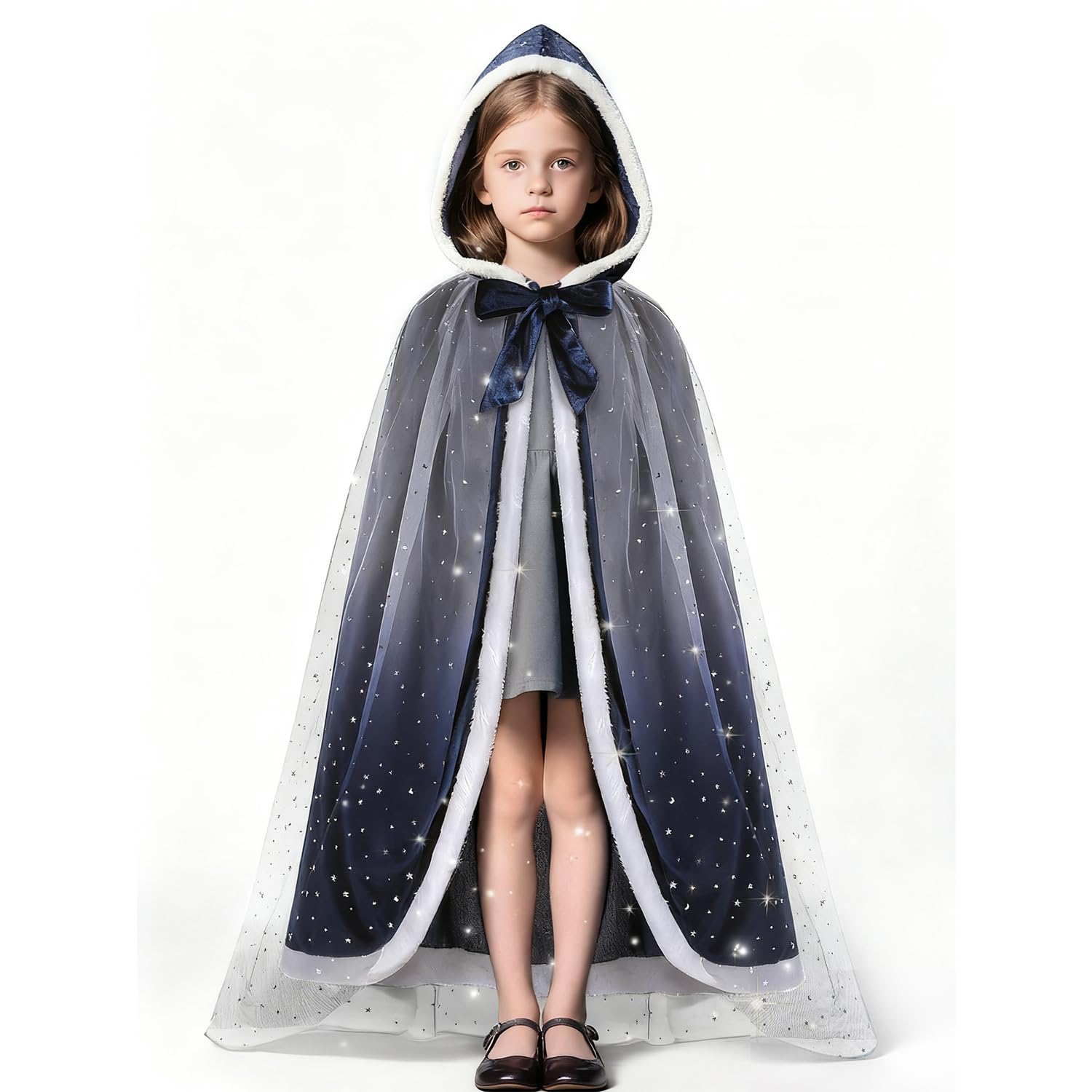 Starry Princess Cape for Girls - Enchanted Velvet Hooded Cloak for Halloween, Christmas, Cosplay & Carnival